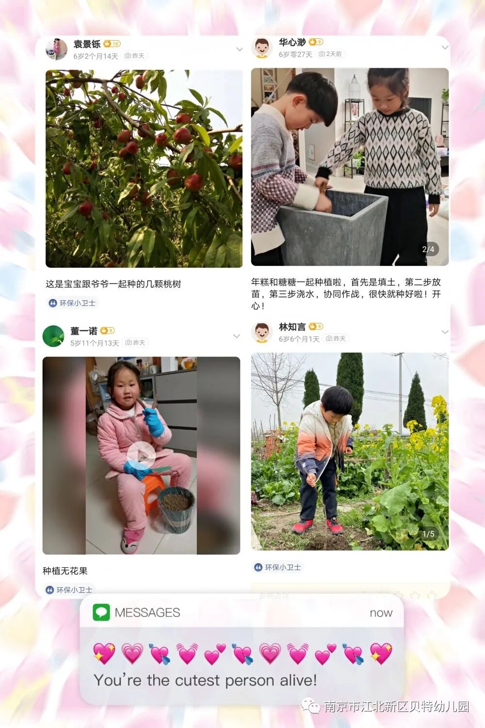 各班教师通过视频、图片、PPT等方式,让小朋友们感受大自然、周围环境的美好,初步建立保护环境的责任感。从小爱护花木、保护环境,知道了小树、花草是我们人类的朋友。