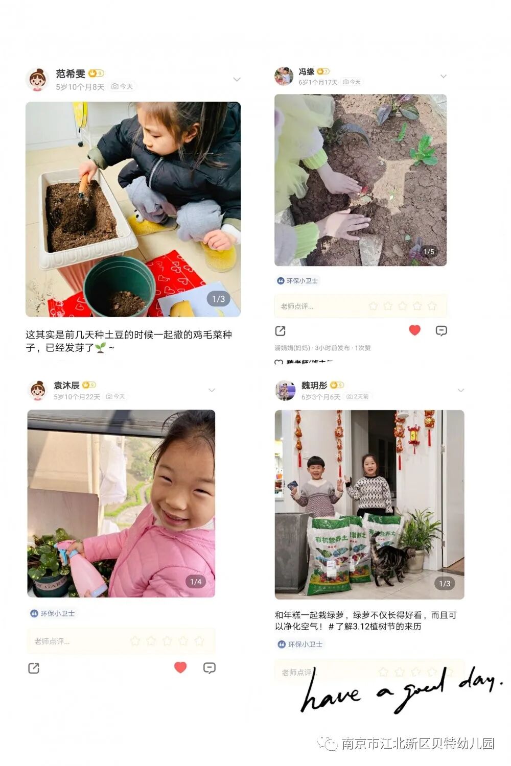 雨水带来了春的气息,仿佛在告诉我们,大地披上绿衣裳了。一年一度的植树节悄然而至,为了让孩子们与大自然“对话”,亲近自然,热爱自然,保护自然,江北新区贝特幼儿园开展了植树节活动。